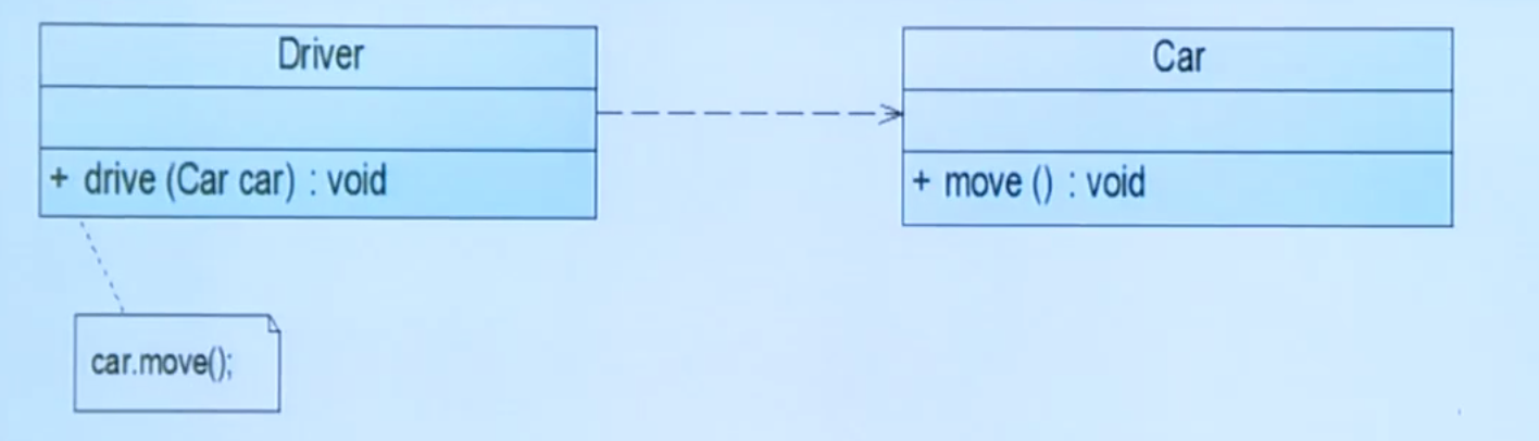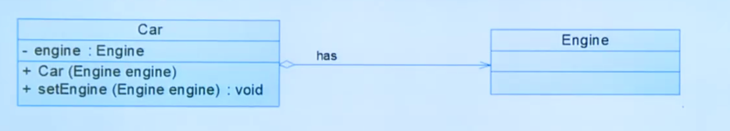 - 拥有的关系(has a),一个类知道另一个类的属性、方法。