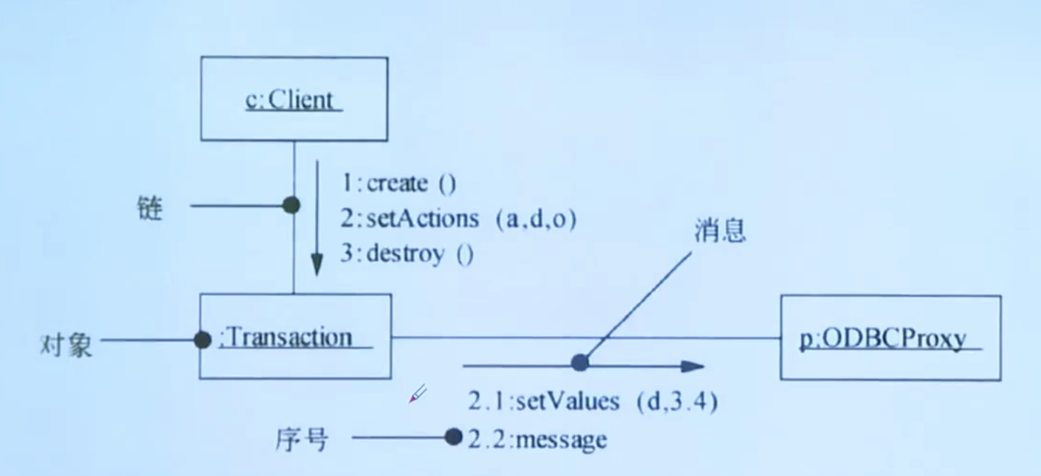 构成:对象、消息、链(是关联的实例、是对象间发送消息的路径)、顺序号。