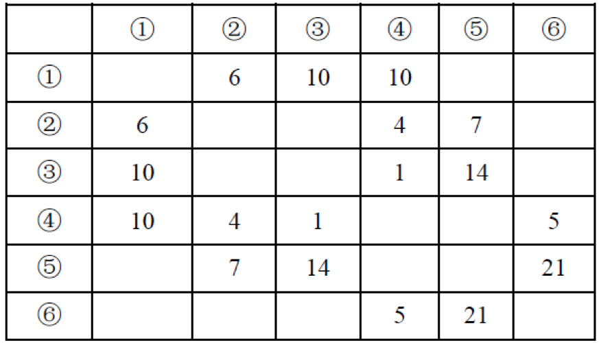 下图标出了某地区的运输网,及节点的运输能力表(单位:万吨/小时)。从节点1到6的最大运输能力(流量)可以达到()万吨/小时。