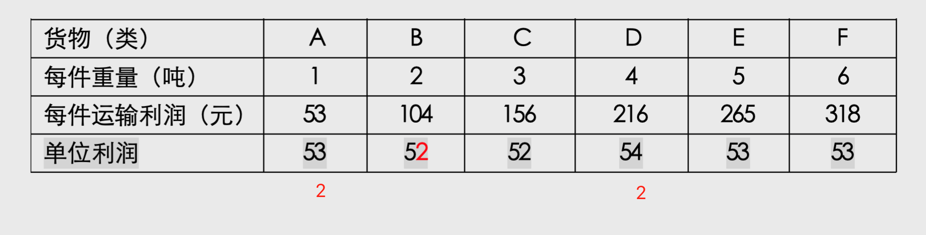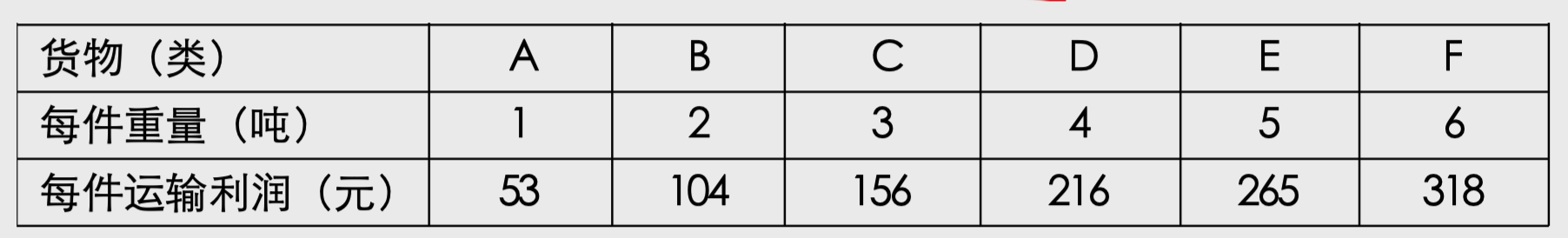 用一辆载重10吨的卡车装运某仓库中的货物(不用考虑装车时货物的大小),这些货物单件的重量和运输利润如下表。适当选择装运一些货物若干件,就能获得最大利润()元。