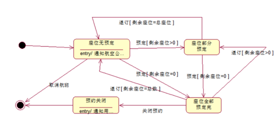 描述一个特定对象的所有可能的状态,及由于各种事件的发生引起的状态间的转移和变化。