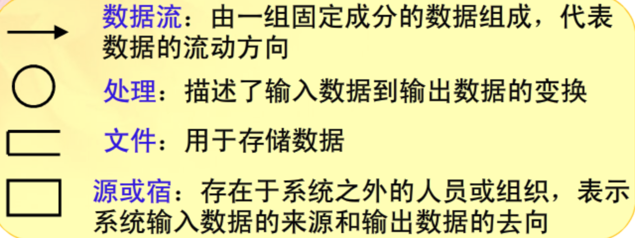 | 需求分析阶段 | 数据流图(DFD)、数据字典 |