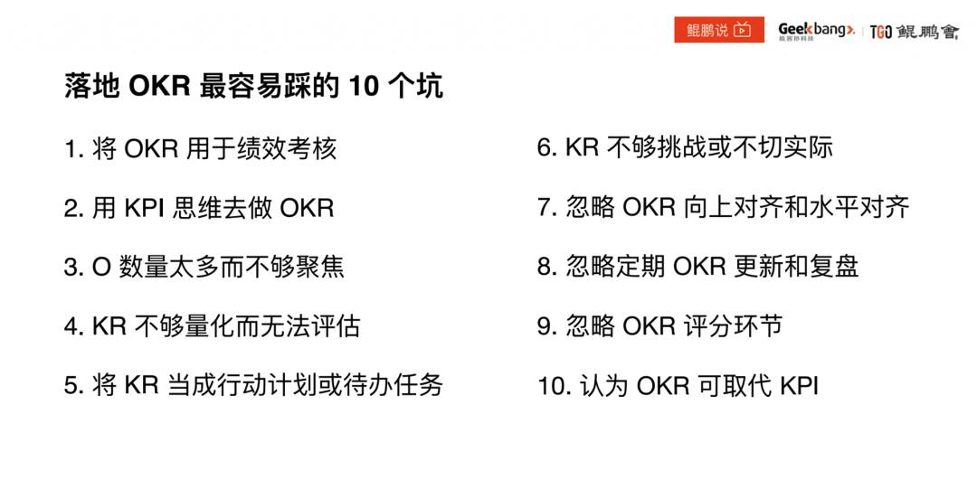 关键结果KR是OKR的另一个重要组成部分。如果说O是对驱动组织超期望方向前进的目标的一种简介定性描述,它回答的是“我想实现什么”的问题,那么KR就是一种用于衡量目标达成情况的定量描述,他回答的是“如何实现目标/如何衡量目标是否完成”的问题。从这个角度来说,KR指定也是至关重要的。