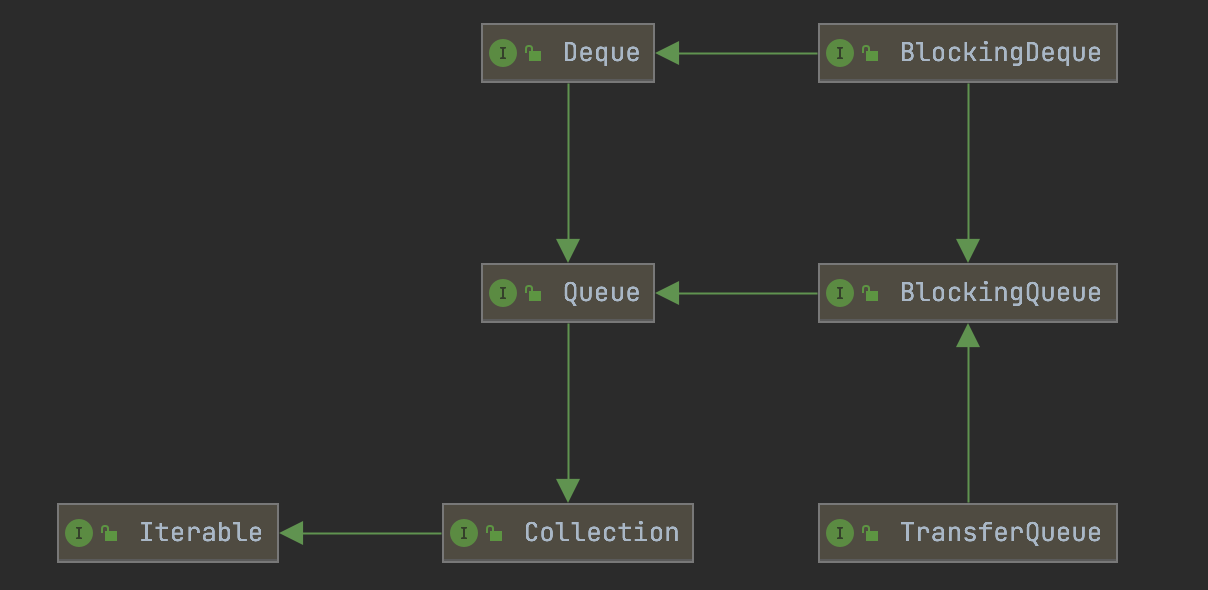 Deque继承了Queue接口 ,Deque同时具备Queue的接口的方法